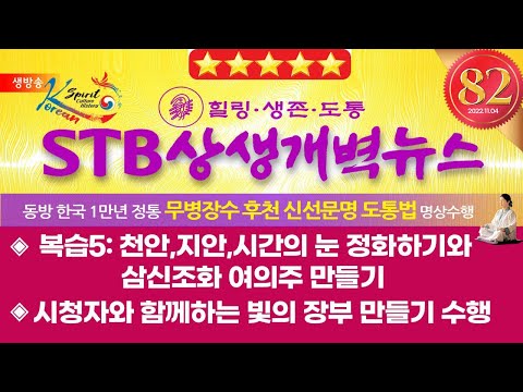 <프로그램>1) 지구촌 개벽뉴스2) 삼랑선도담https://www.youtube.com/watch?v=T785e7HtDCs&t=695s- 주제 : 천안, 지안, 시간의 눈 정화하기- 진행 : 현금상/ 전형아00:00 STB상생개벽뉴스 82회 11월 4일 (금) 0:47 오프닝 멘트 1:41 오늘의 성구 2:42 천부경 노래 5:32 천부경… 더보기