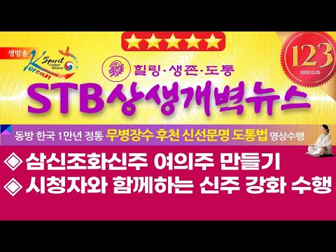 프로그램1) 지구촌 개벽뉴스2) 삼랑선도담https://youtu.be/Um2BcvBaJO4?t=633- 주제 : 삼신조화신주 백광여의주 만들기- 진행 : 전희수/ 오영희
