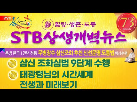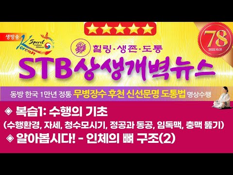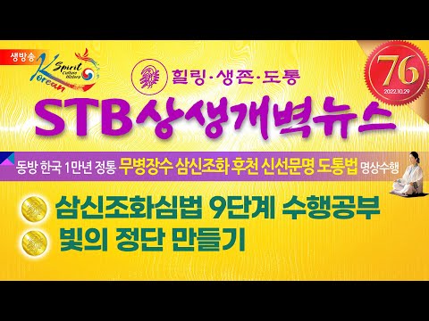 <프로그램>1) 지구촌 개벽뉴스2) 삼랑선도담https://www.youtube.com/watch?v=BcMBv9Iiz50&t=701s- 주제 : 조화빛몸, 빛의 신선몸 만들기- 진행 : 현금상수호사/ 경규오3) 함께하는 후천조화 신선수행4) 상생라이프https://www.youtube.com/watch?v=BcMBv9Iiz50&t=2307s - 주제 : 인체의 뼈 구조 - 진행 : 한국 상생한의원장00:00 STB상생개벽뉴스 78회 10월 31일 (월)│ 0:50 오프닝 멘트 1:44 오늘의 성구 2:38… 더보기