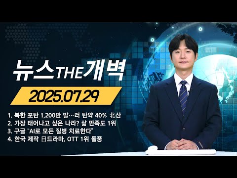 [뉴스THE개벽] 북한 포탄 1,200만 발…러 탄약 40% 北산 / 가장 태어나고 싶은 나라? / 구글 “AI로 모든 질병 치료한다” / 한국…