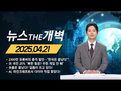 [뉴스THE개벽] 2300만 유튜버의 충격 발언 / 美 국민 25% “북한 침공? 우린 개입 안 해” / 숏폼은 끝났다? 딥폼이 뜨고 있다 / AI, 마인크래프트서 다이아 찾았다